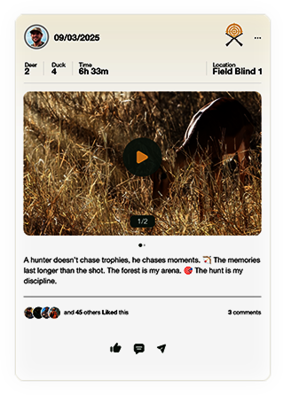 Every hunt tells a story. Capture your moments, share your experiences, and discover new hunting spots through a community of passionate hunters.