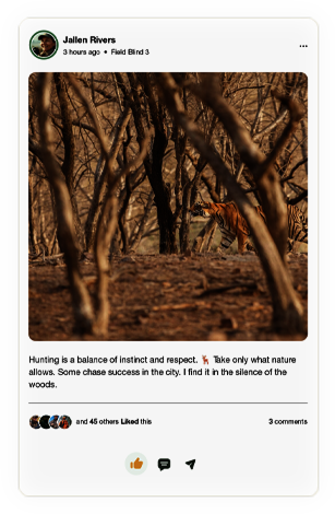 Scroll through updates, photos, and hunting discussions from around the world. Stay connected and learn from hunters everywhere.